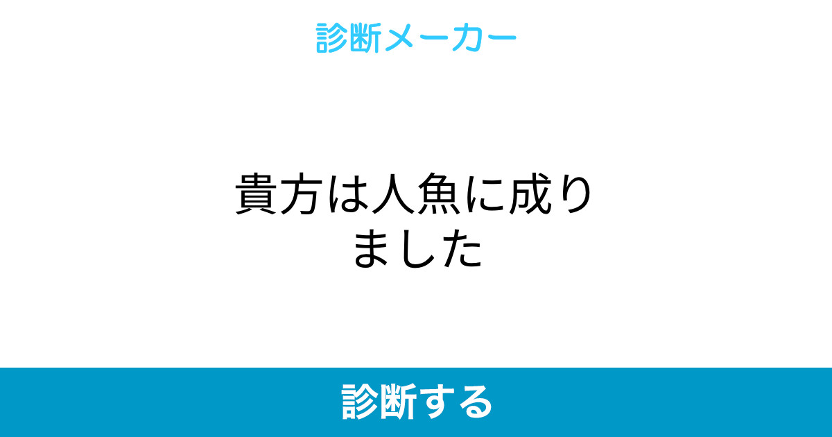晴れ、時々Picrew。 そしておすすめ画像メーカー 自分のFacebookのタイムラインは今日、何人も「用紙娃娃捏自己」(着せ替え人形で自分をつくろう)とのタグを付けて、男女ペアのイラストをあげていた。 見てみると、画像メーカーサービス Picrew の貴方は人魚に成りました 人魚の日と聞いて。 キャラ名でもキャラ作成でも何でも。 運転しながら修正中。 基本ファンタジー、時々人工物。 もし絵にしたらタグつけてくれたら嬉しいなアリエル 『リトル・マーメイド』(19)に登場 とうじょう する、美 うつく しい容姿 ようし と歌声 うたごえ を持 も つ人魚 にんぎょ 。 海 うみ の仲間 なかま 、魚 さかな のフランダーやカニのセバスチャンたちと楽 たの しく暮 く らしながらも人間